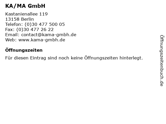 | Öffnungszeiten KA/MA GmbH in Berlin anzeigen | |