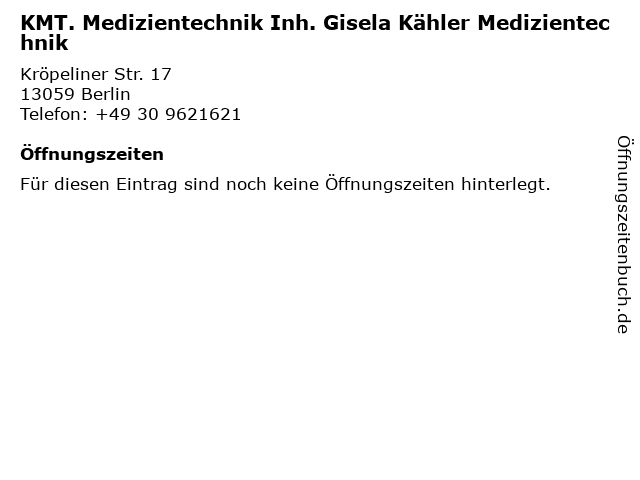 | KMT. Medizientechnik Inh. Gisela Kähler Medizientechnik anrufen | |