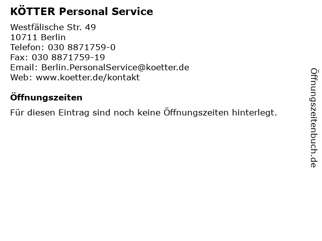 | Öffnungszeiten KÖTTER Personal Service in Berlin anzeigen | |
