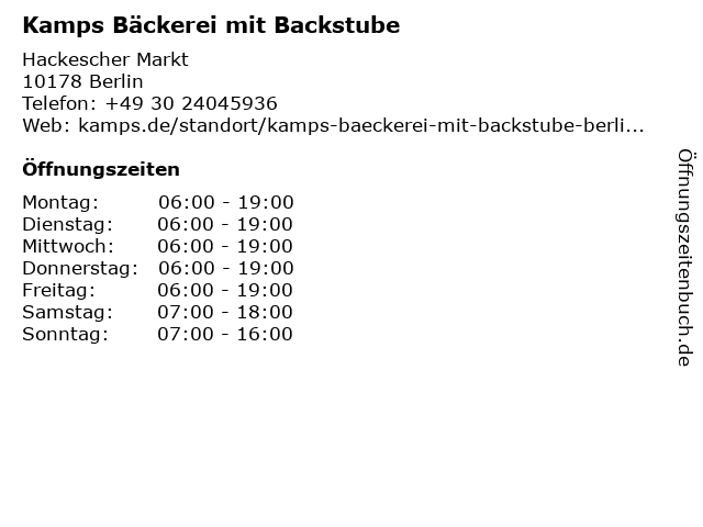 | Öffnungszeiten Kamps Bäckerei mit Backstube in Berlin anzeigen | |