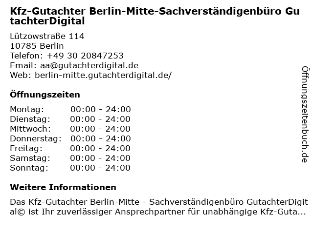 4 Neue Chance gGmbH Sozial- und Jugendhilfedienste Mitte (Entfernung: 4,02 km) Chausseestr. 84, 10115 Berlin 5 00.00 - 24.00 h Absicherungs- & Aufsperrdienst - Mitte (Entfernung: 4,05 km) Liesenstr. 11, 10115 Berlin 6 IK Gutachten Sachverständigenbüro für Kraftfahrzeugtechnik (Entfernung: 4,37 km) Reinickendorfer Str. 5, 13347 Berlin |
