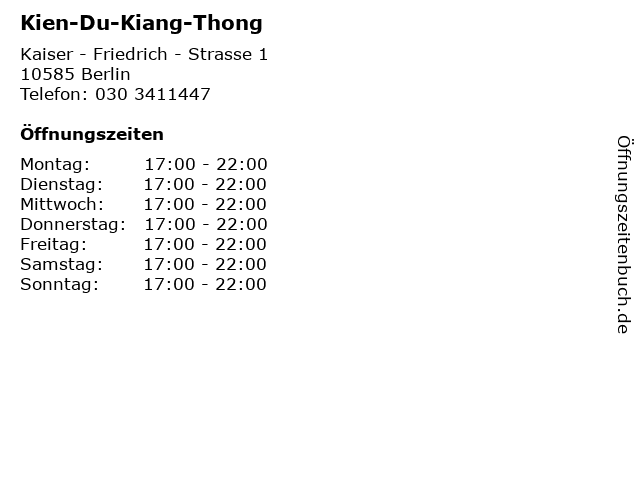 | Öffnungszeiten Kien-Du-Kiang-Thong in Berlin anzeigen | |