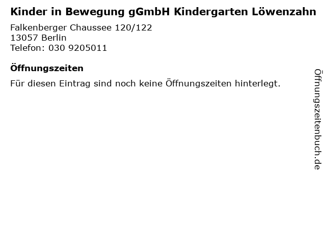| Kinder in Bewegung gGmbH Kindergarten Löwenzahn anrufen | |