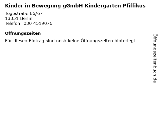 | Kinder in Bewegung gGmbH Kindergarten Pfiffikus anrufen | |