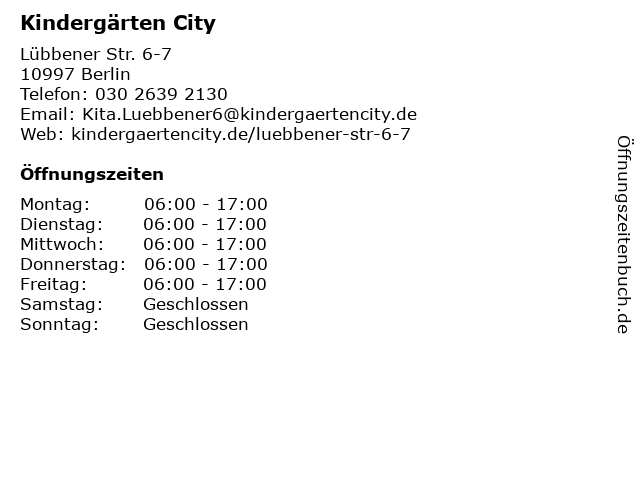 Öffnungszeiten Kindergärten City in Berlin anzeigen | |