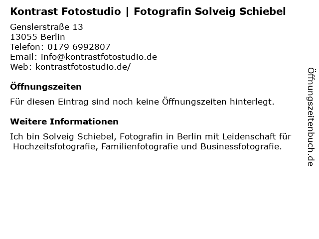 | Kontrast Fotostudio | Fotografin Solveig Schiebel anrufen | |