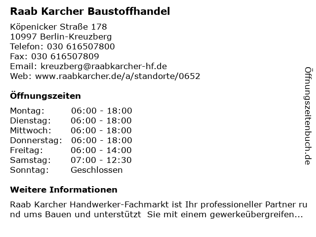 Öffnungszeiten Raab Karcher Baustoffhandel in Berlin-Kreuzberg anzeigen