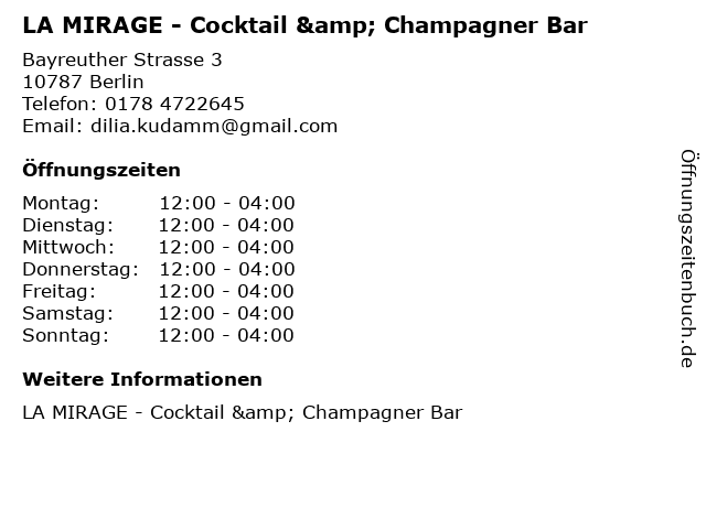 Branchen & Suchbegriffe zu LA MIRAGE - Cocktail & Champagner Bar:bar, champagner, cocktail, la, mirage, nachtclub |