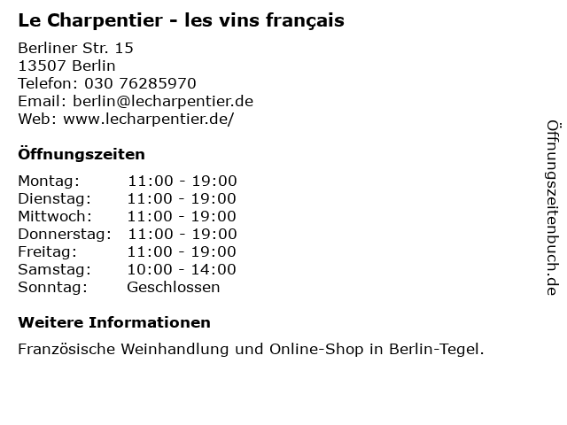 Branchen & Suchbegriffe zu Le Charpentier - les vins français:charpentier, français, le, les, vins |