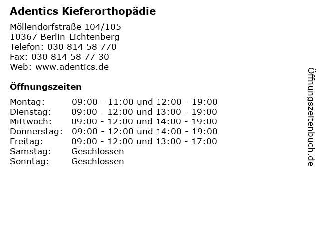2 Dres. med. dent. Köning - Fachzahnärzte für Kieferorthopädie (Entfernung: 0,00 km) Möllendorffstraße 104/105, 10367 Berlin 3 Andreas Dörfer Kieferorthopädie, Gomez Serrano Dr. Zahnarzt für Kieferorthopädie (Entfernung: 0,53 km) Frankfurter Allee 111, 10247 Berlin 5 Praxis für Kieferorthopädie - Dr. med. dent. Katja und Alexander Korb (Entfernung: 5,01 km) Oberfeldstr. 2, 12683 Berlin 6 Zahnärzte & Kieferorthopädie am Gendarmenmarkt (Entfernung: 5,85 km) Markgrafenstraße 35, 10117 Berlin |