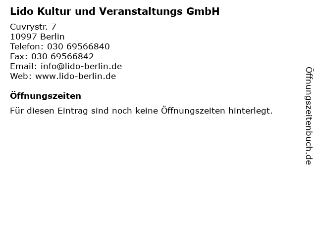 | Lido Kultur und Veranstaltungs GmbH anrufen | |