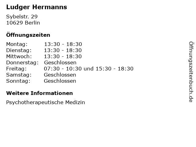 | Öffnungszeiten Ludger Hermanns in Berlin anzeigen | |