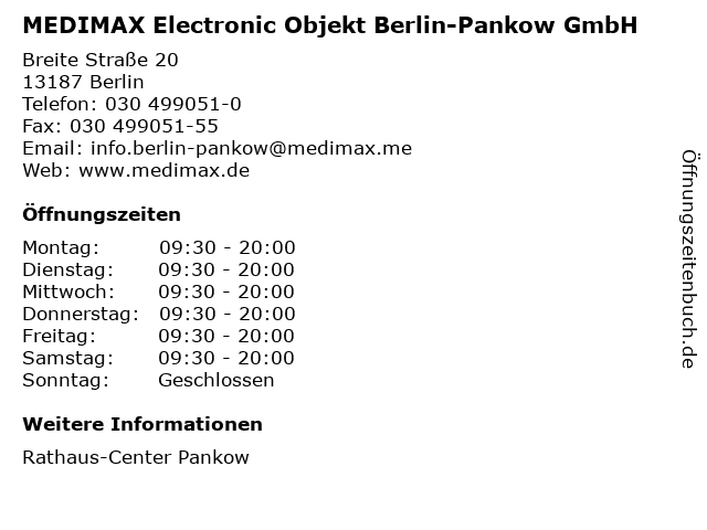 Branchen & Suchbegriffe zu MEDIMAX Electronic Objekt Berlin-Pankow GmbH:computer, electronic, elektrogeträte, hardware, hifi, medimax, objekt, pankow, software, tv, unterhaltungselektronik, video |