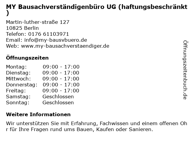Branchen & Suchbegriffe zu MY Bausachverständigenbüro UG (haftungsbeschränkt):bausachverständigenbüro, haftungsbeschränkt, my, ug |