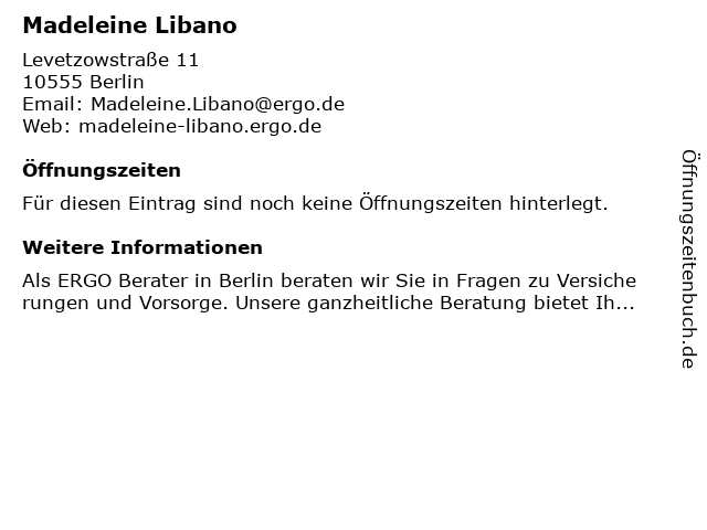 Öffnungszeiten Madeleine Libano in Berlin anzeigen | |