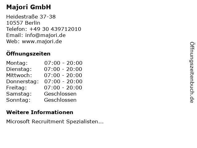 | Öffnungszeiten Majori GmbH in Berlin anzeigen | |