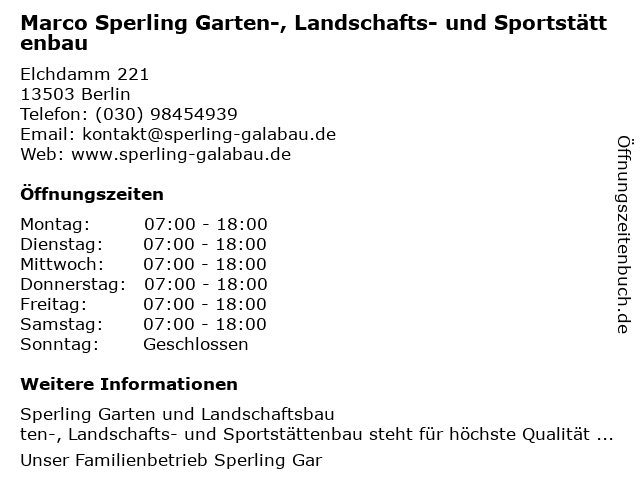 1 Karsten Sperling Schornsteinfegermeisterbetrieb (Entfernung: 3,16 km) Forststr. 29, 16761 Hennigsdorf 2 Horst Kruse & Sohn Garten, Landschafts- u. Sportplatzbau GmbH (Entfernung: 10,58 km) Wiesendamm 21, 13597 Berlin 4 Landschafts- u. Gartengestaltung Minge GmbH (Entfernung: 12,90 km) Weimarer Str. 8, 16515 Oranienburg 6 |
