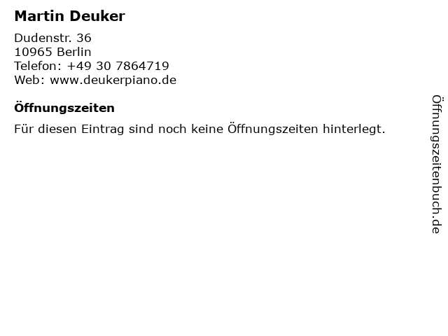| Öffnungszeiten Martin Deuker in Berlin anzeigen | |