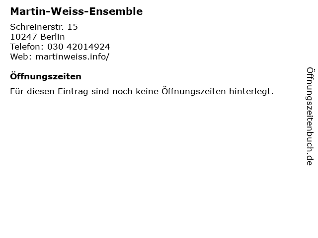 | Öffnungszeiten Martin-Weiss-Ensemble in Berlin anzeigen | |