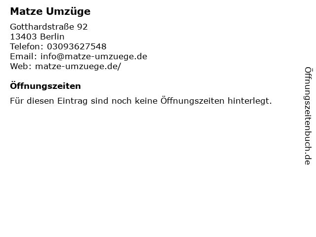 | Öffnungszeiten Matze Umzüge in Berlin anzeigen | |