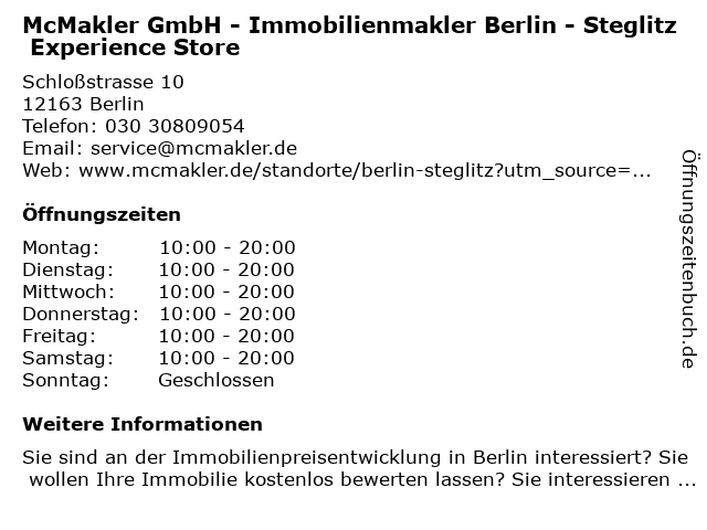 Branchen & Suchbegriffe zu McMakler GmbH - Immobilienmakler Berlin - Steglitz Experience Store:experience, immobilienmakler, mcmakler, steglitz, store |