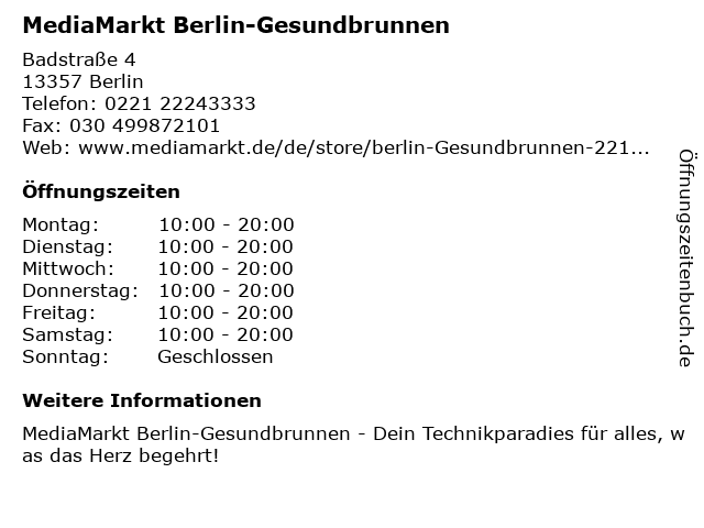Branchen & Suchbegriffe zu MediaMarkt Berlin-Gesundbrunnen:gesundbrunnen, mediamarkt |