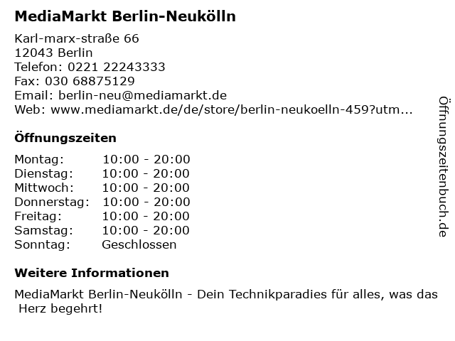 Öffnungszeiten MediaMarkt Berlin-Neukölln in Berlin anzeigen | |