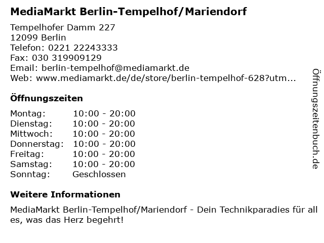 Branchen & Suchbegriffe zu MediaMarkt Berlin-Tempelhof/Mariendorf:anbieter für telekommunikationsgeräte, computergeschäft, geschäft für handyzubehör, geschäft für heimaudiosysteme, geschäft für videospiele, handyreparaturgeschäft, haushaltsgeräte, mediamarkt, mobiltelefongeschäft, tempelhof/mariendorf |