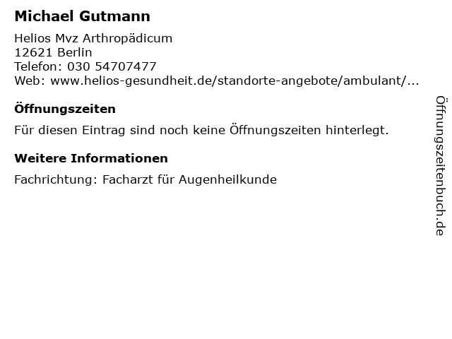 | Öffnungszeiten Michael Gutmann in Berlin anzeigen | |