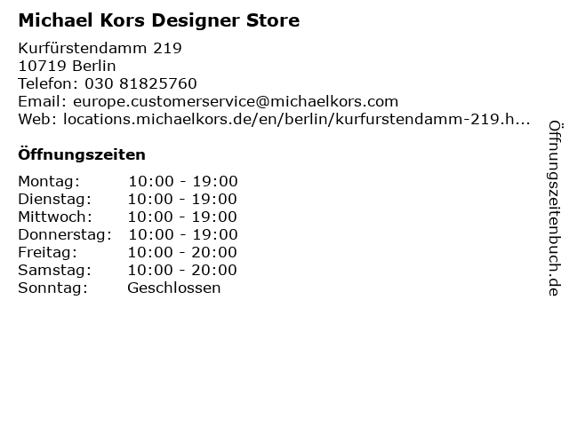 | Öffnungszeiten Michael Kors Designer Store in Berlin anzeigen | |
