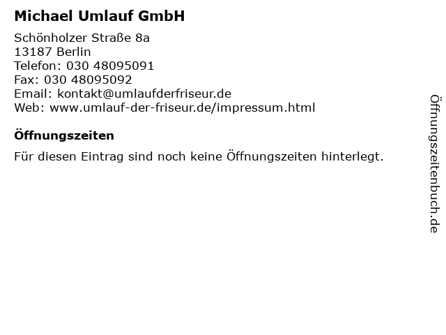 | Öffnungszeiten Michael Umlauf GmbH in Berlin anzeigen | |