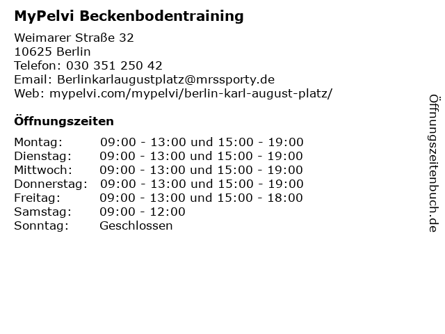 | Öffnungszeiten MyPelvi Beckenbodentraining in Berlin anzeigen | |