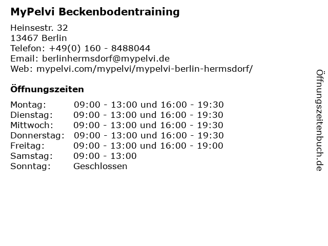 | Öffnungszeiten MyPelvi Beckenbodentraining in Berlin anzeigen | |