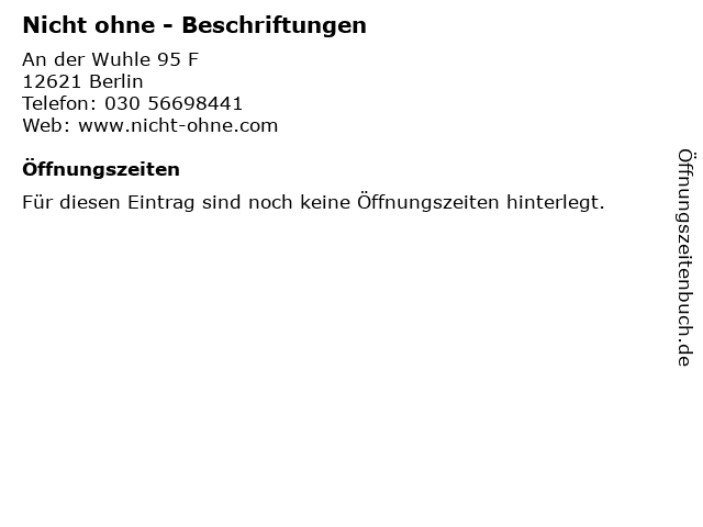 | Öffnungszeiten Nicht ohne - Beschriftungen in Berlin anzeigen | |