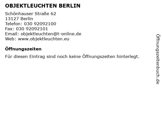 | Öffnungszeiten OBJEKTLEUCHTEN BERLIN in Berlin anzeigen | |