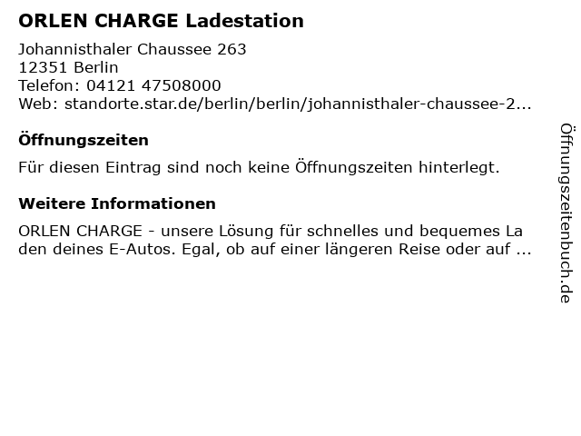 Öffnungszeiten ORLEN CHARGE Ladestation