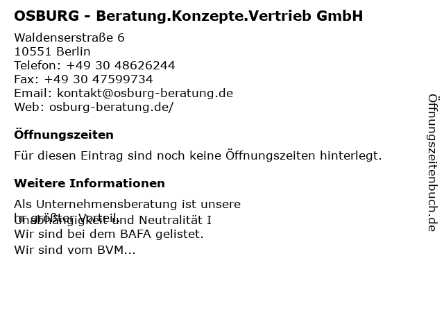 | OSBURG - Beratung.Konzepte.Vertrieb GmbH anrufen | |
