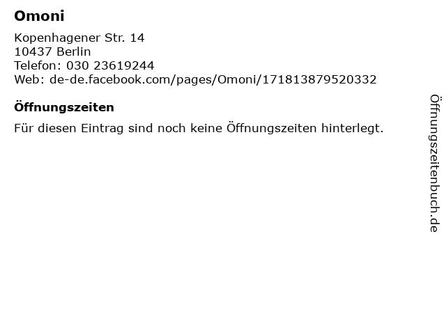 | Öffnungszeiten Omoni in Berlin anzeigen | |