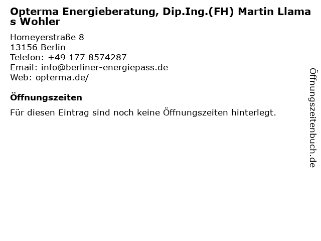 | Opterma Energieberatung, Dip.Ing.(FH) Martin Llamas Wohler anrufen | |