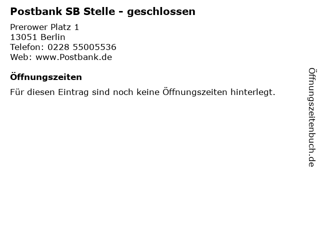 Öffnungszeiten Postbank SB Stelle - geschlossen in Berlin anzeigen