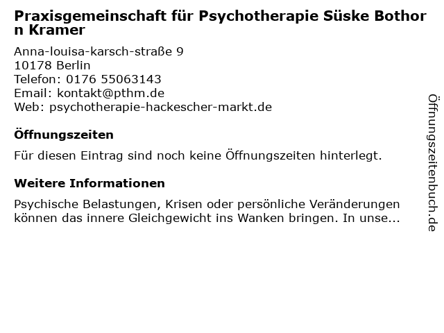 | Praxisgemeinschaft für Psychotherapie Süske Bothorn Kramer anrufen | |