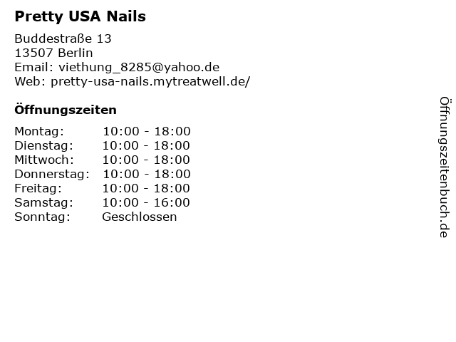 | Öffnungszeiten Pretty USA Nails in Berlin anzeigen | |