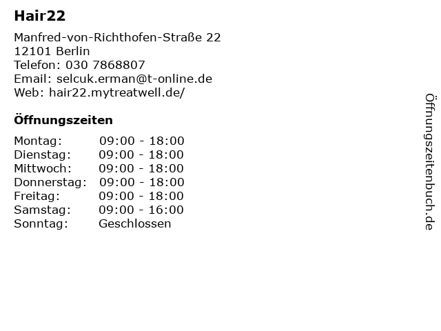 | Öffnungszeiten Prime Friseur in Berlin anzeigen | |