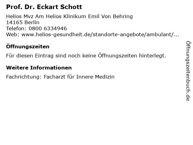 | Öffnungszeiten Prof. Dr. Eckart Schott in Berlin anzeigen | |