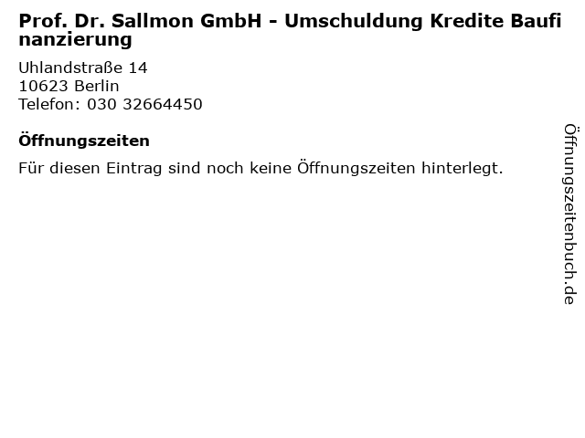 | Prof. Dr. Sallmon GmbH - Umschuldung Kredite Baufinanzierung anrufen | |