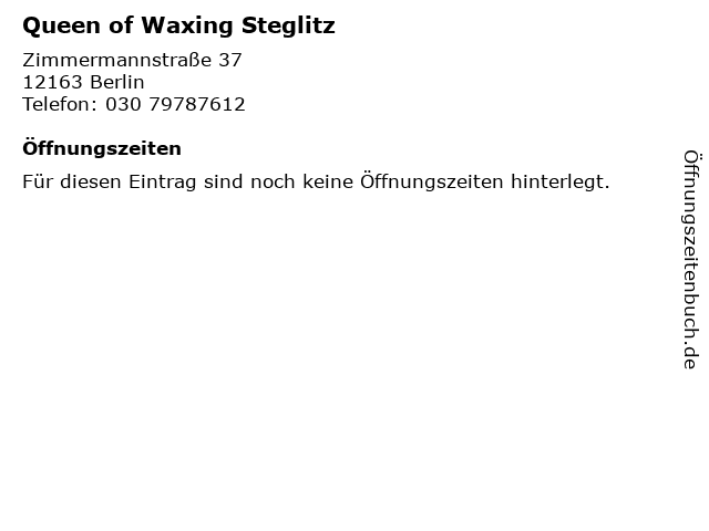 | Öffnungszeiten Queen of Waxing Steglitz in Berlin anzeigen | |