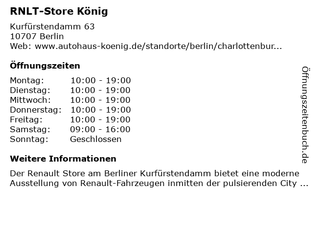 | Öffnungszeiten RNLT-Store König in Berlin anzeigen | |