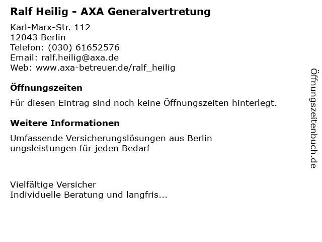 | Ralf Heilig - AXA Generalvertretung anrufen | |