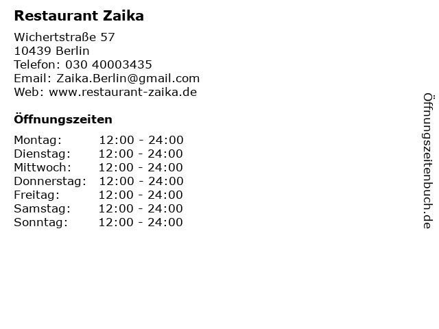 | Öffnungszeiten Restaurant Zaika in Berlin anzeigen | |