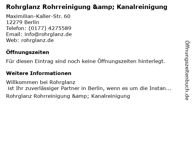 | Rohrglanz Rohrreinigung & Kanalreinigung anrufen | |
